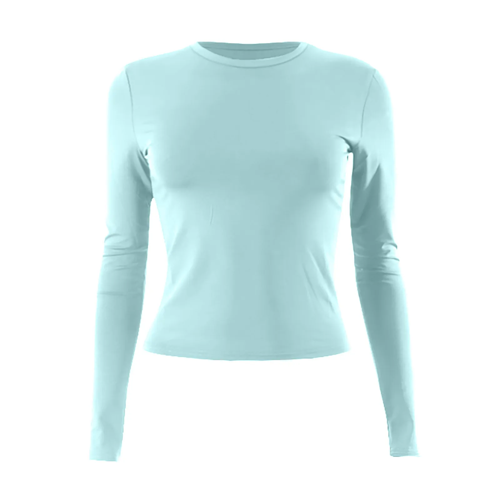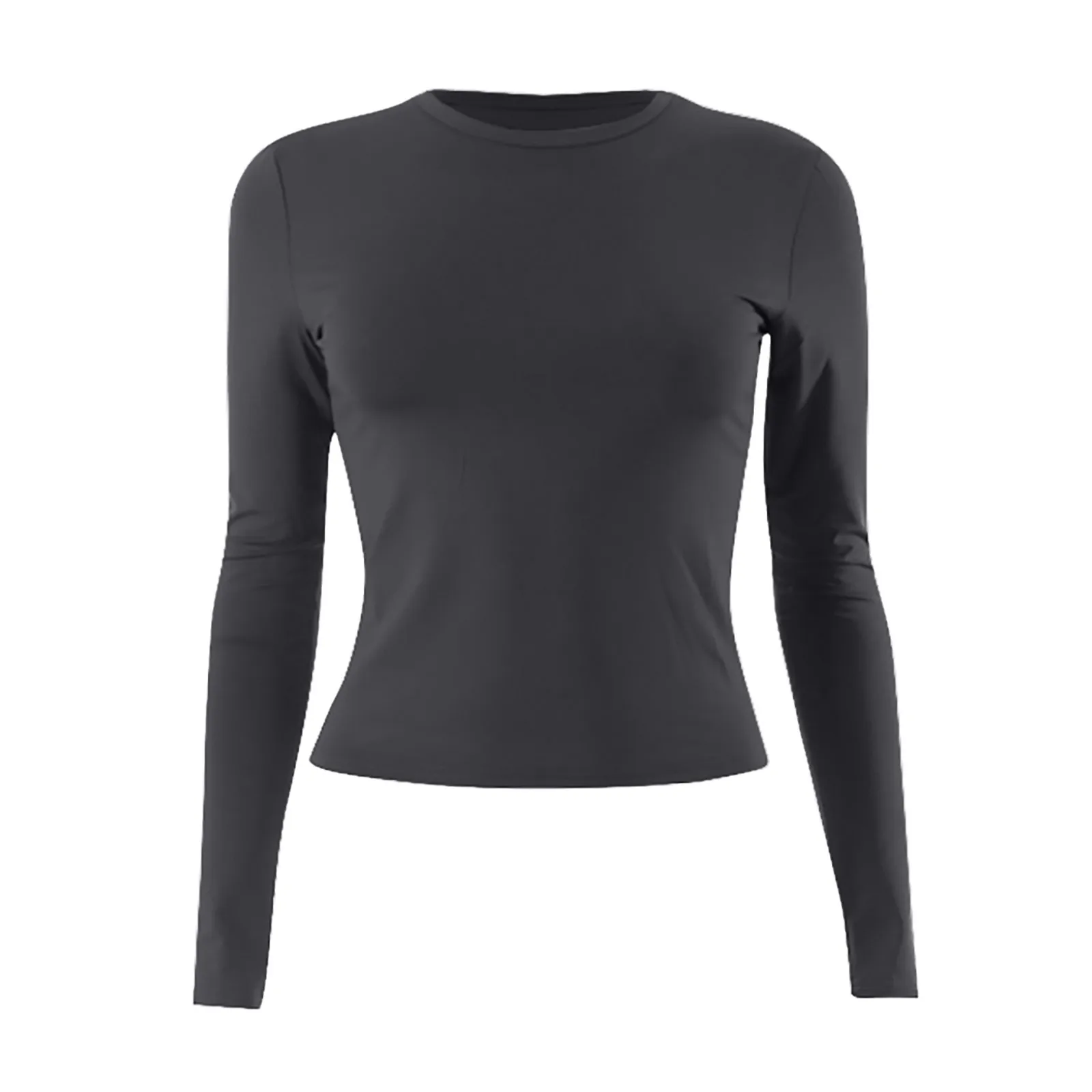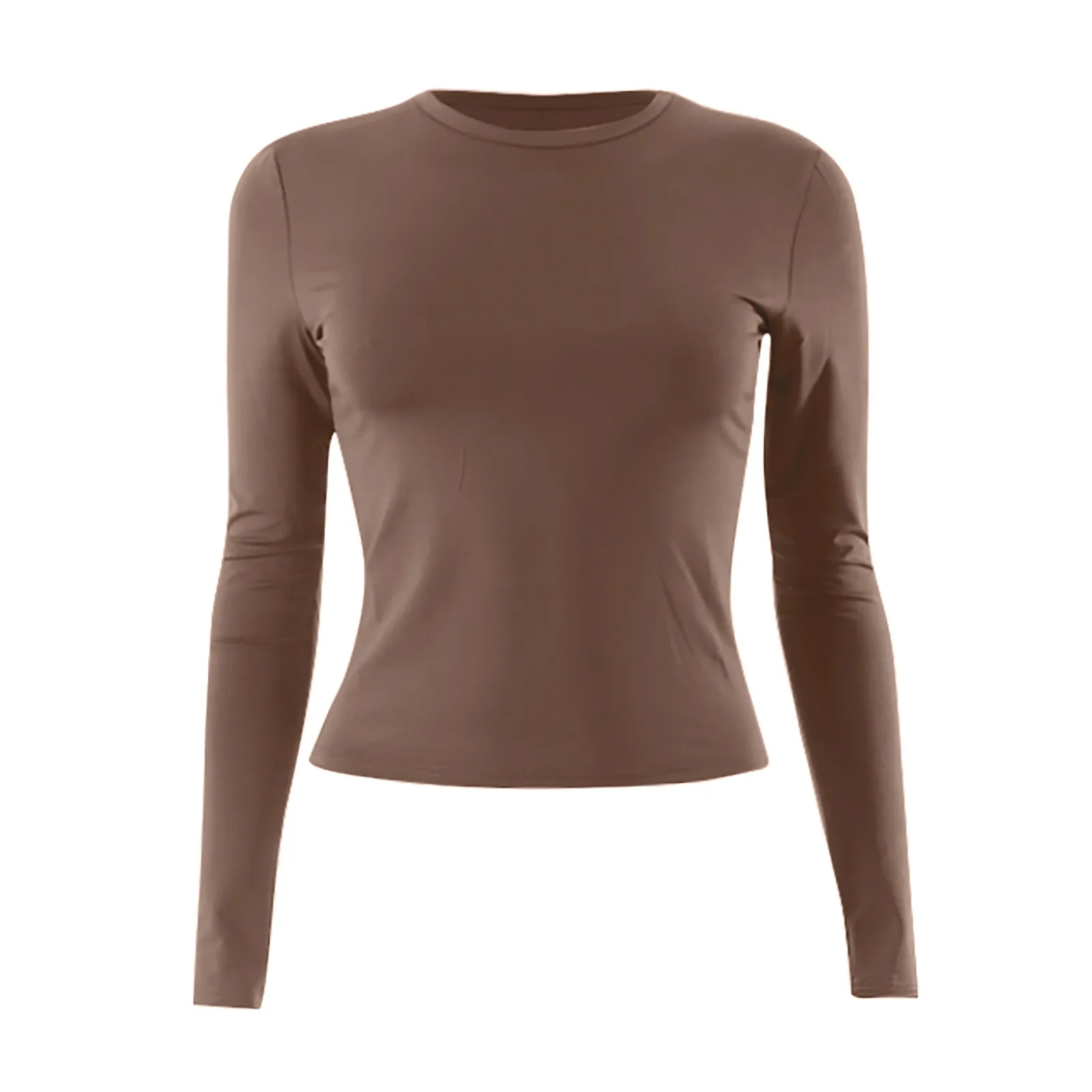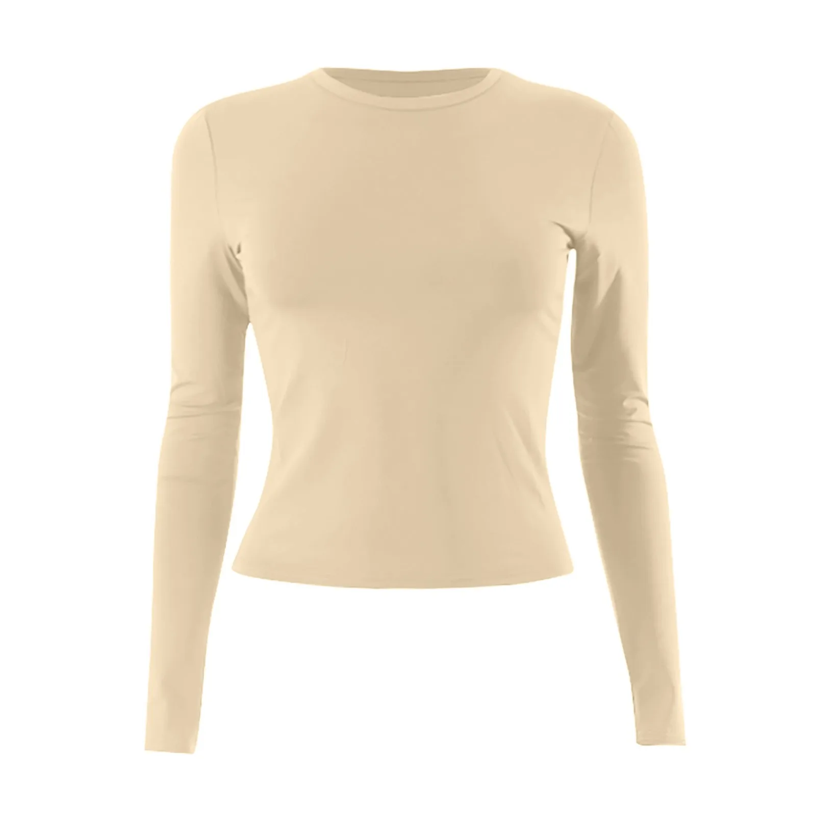 Women's Fashion Solid Colour Round Neck Long Sleeve T-Shirt Top