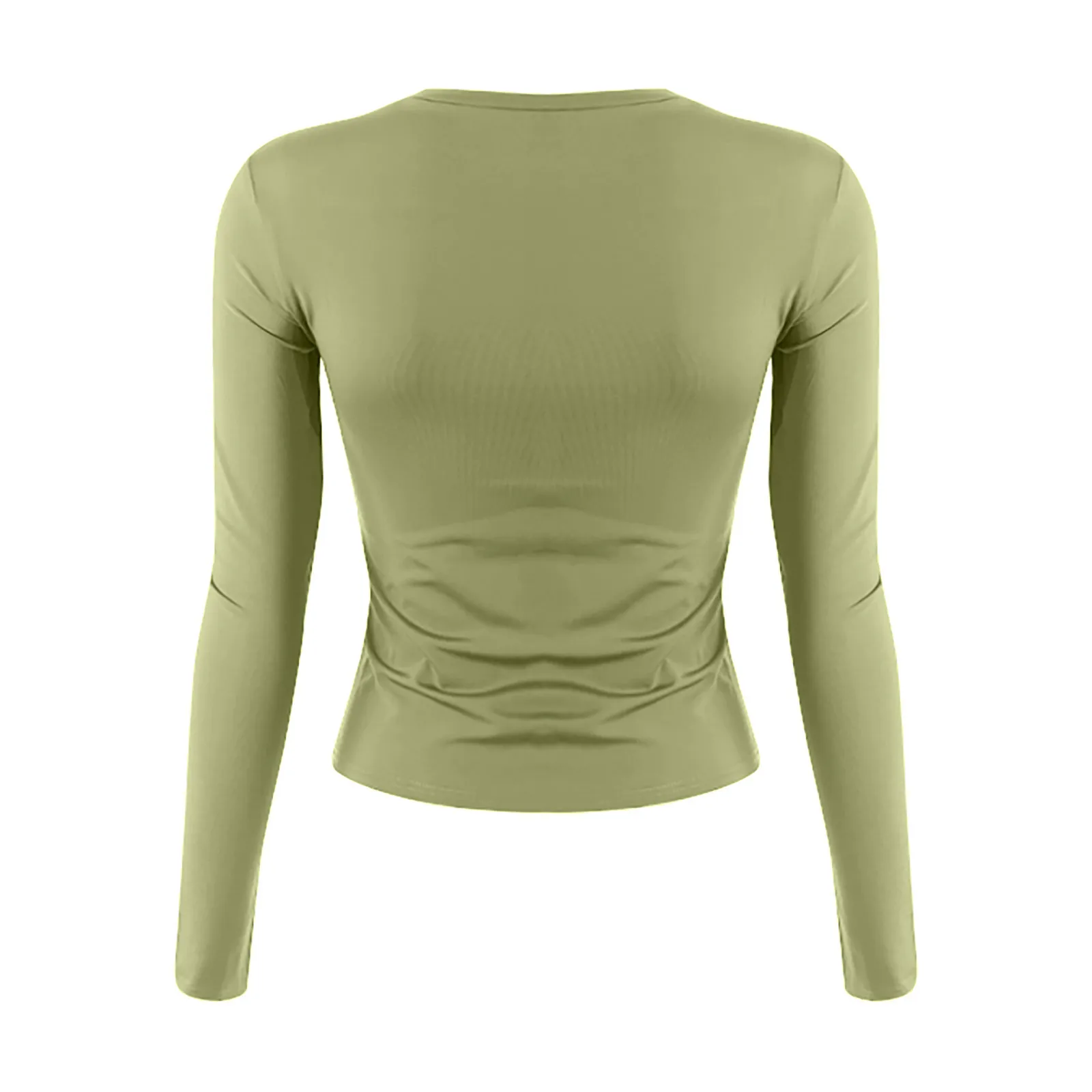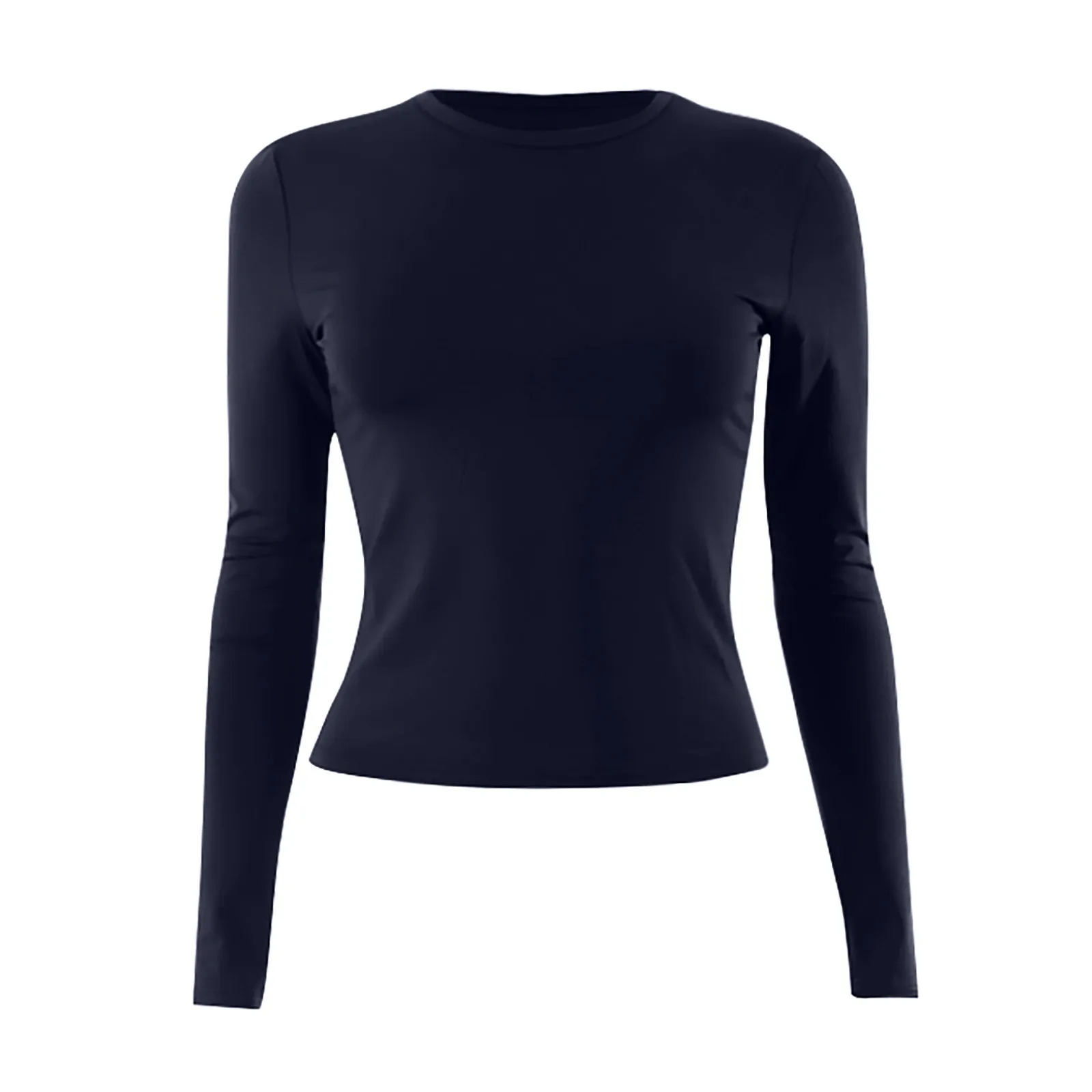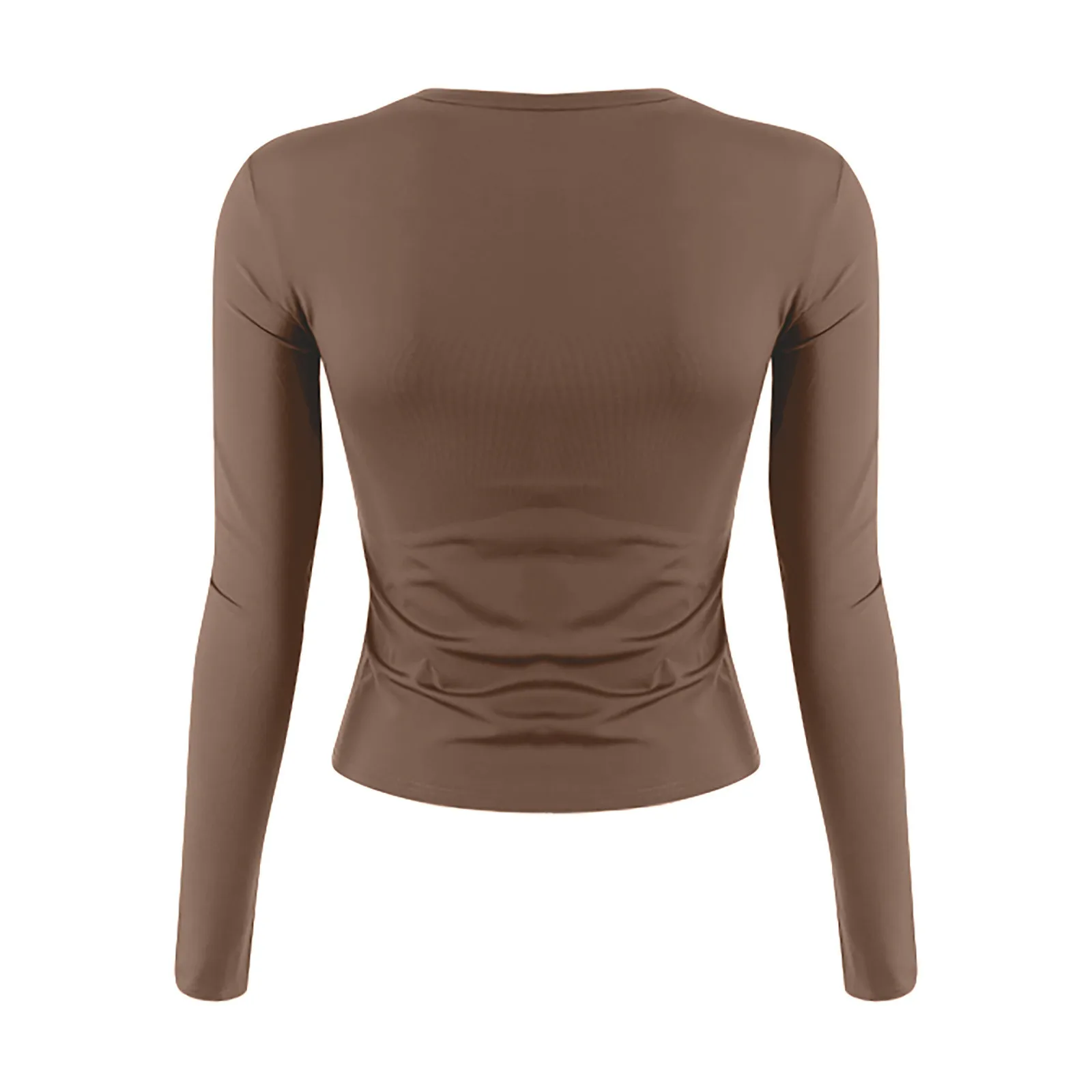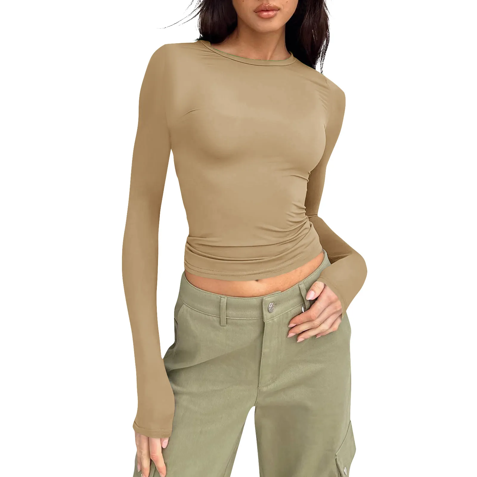 Women's Fashion Solid Colour Round Neck Long Sleeve T-Shirt Top