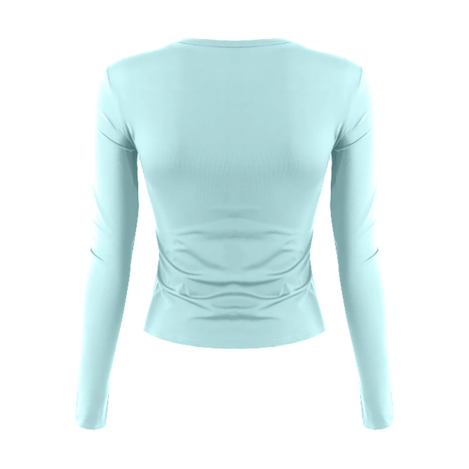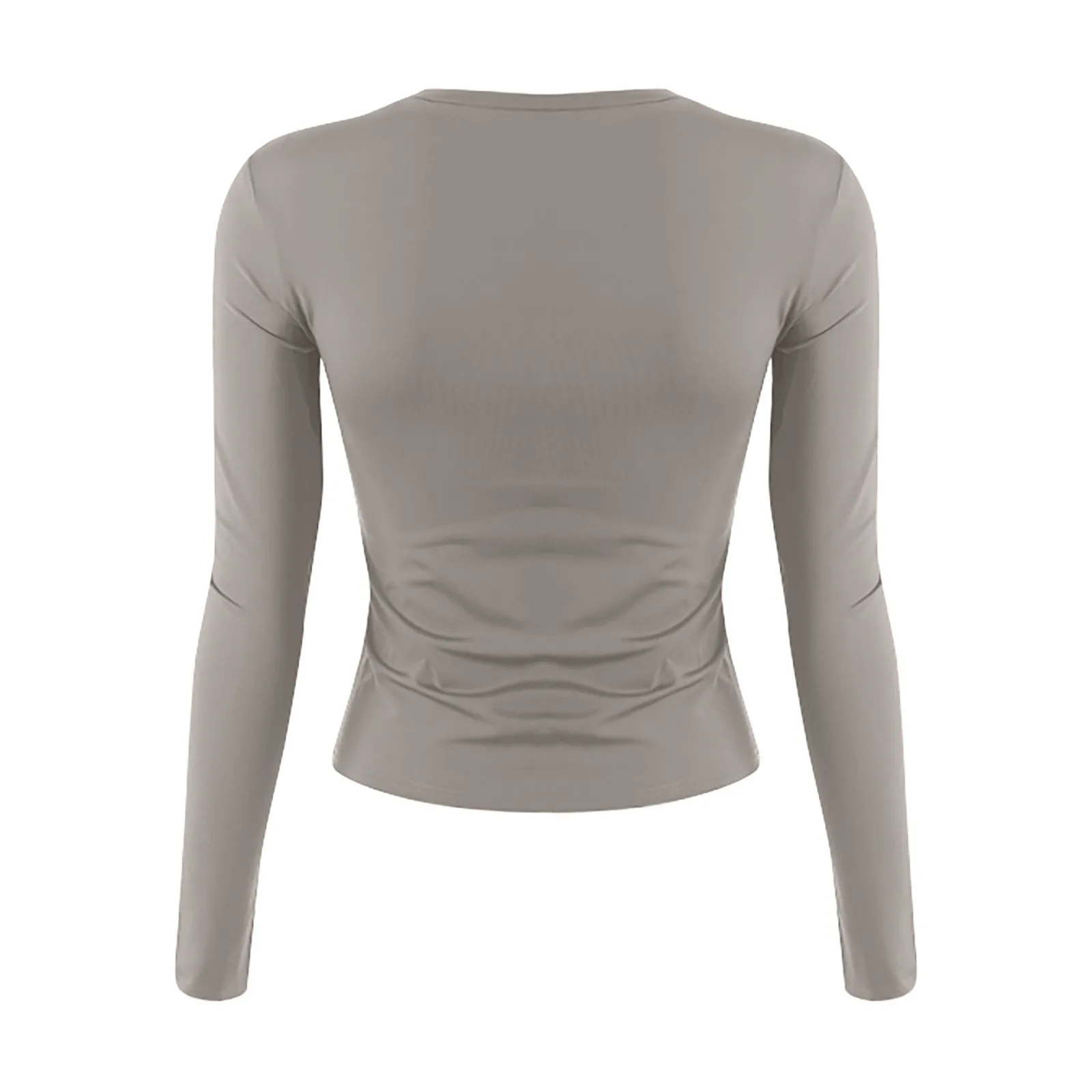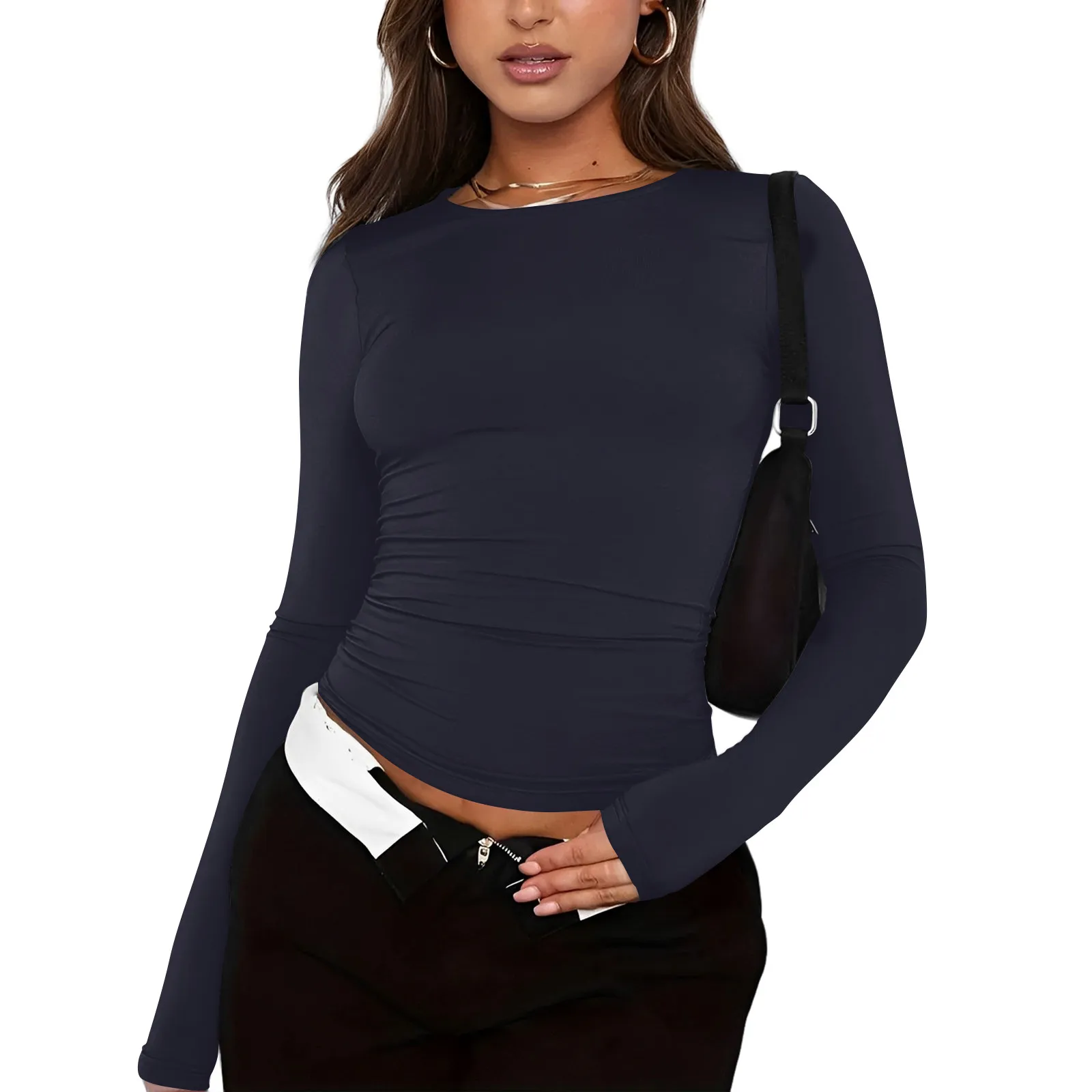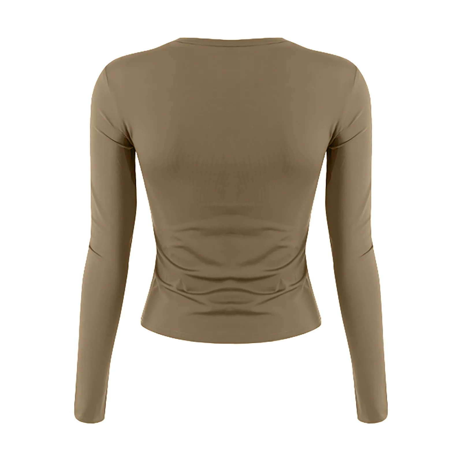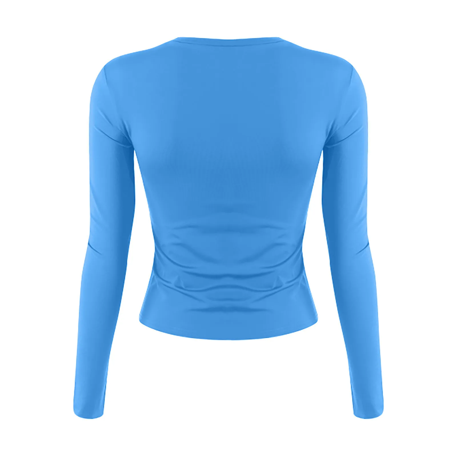 Women's Fashion Solid Colour Round Neck Long Sleeve T-Shirt Top