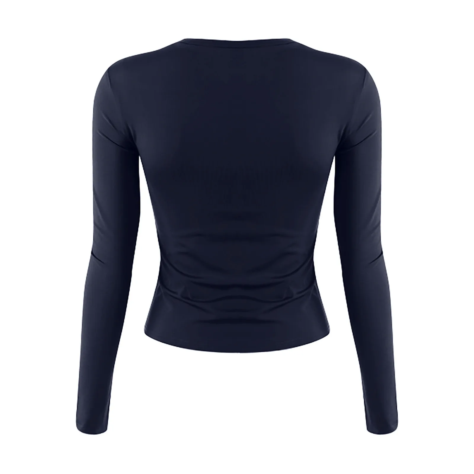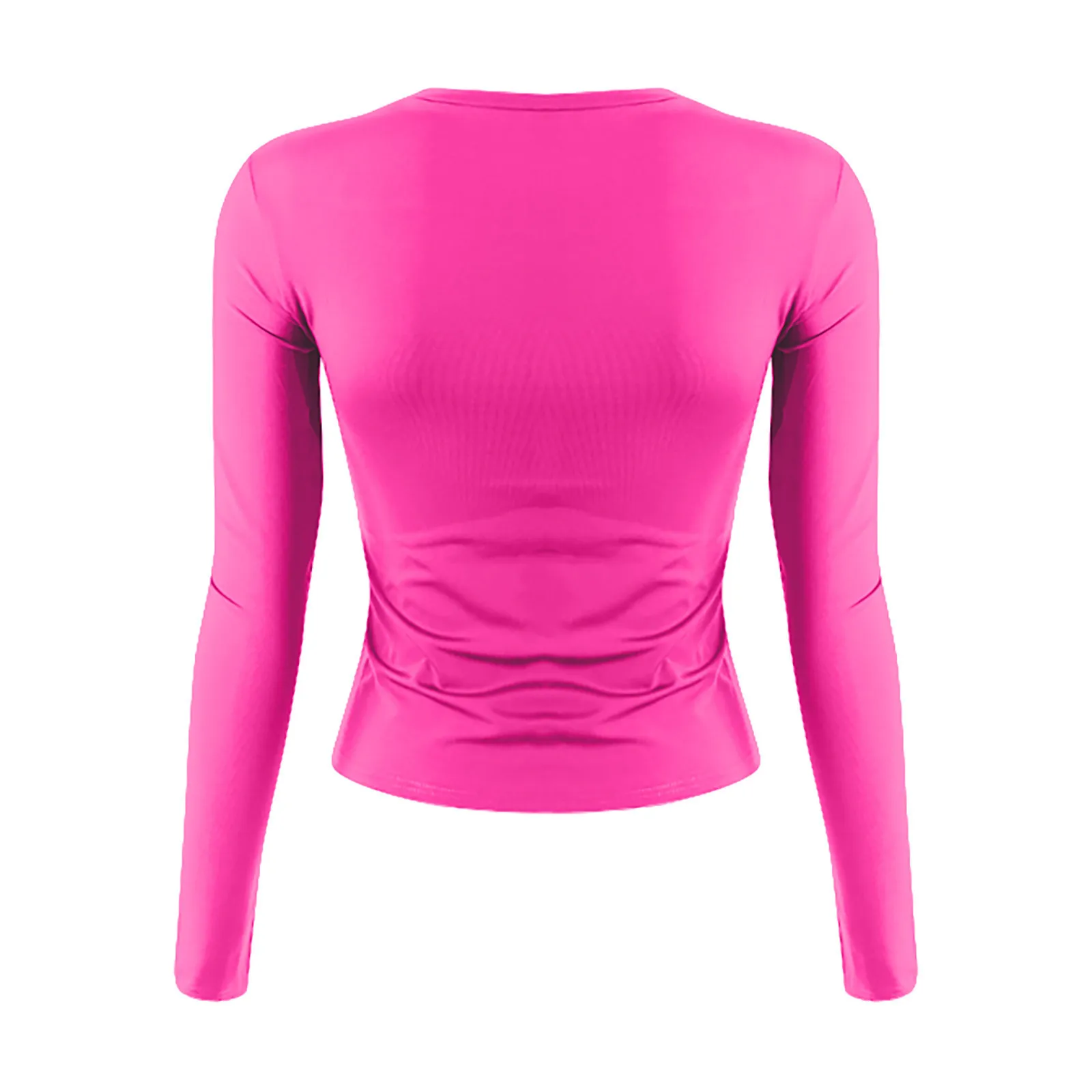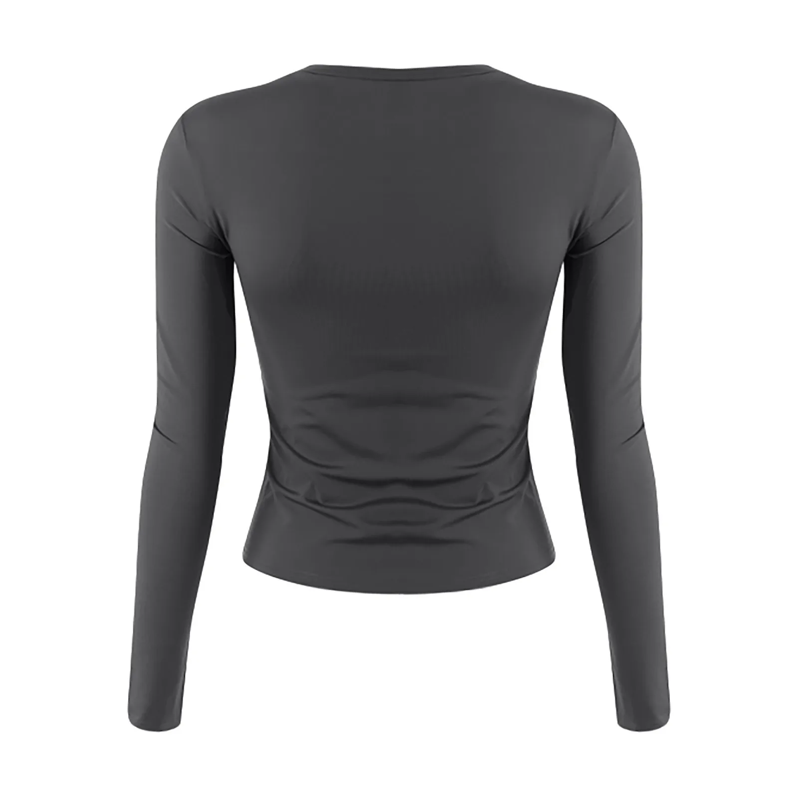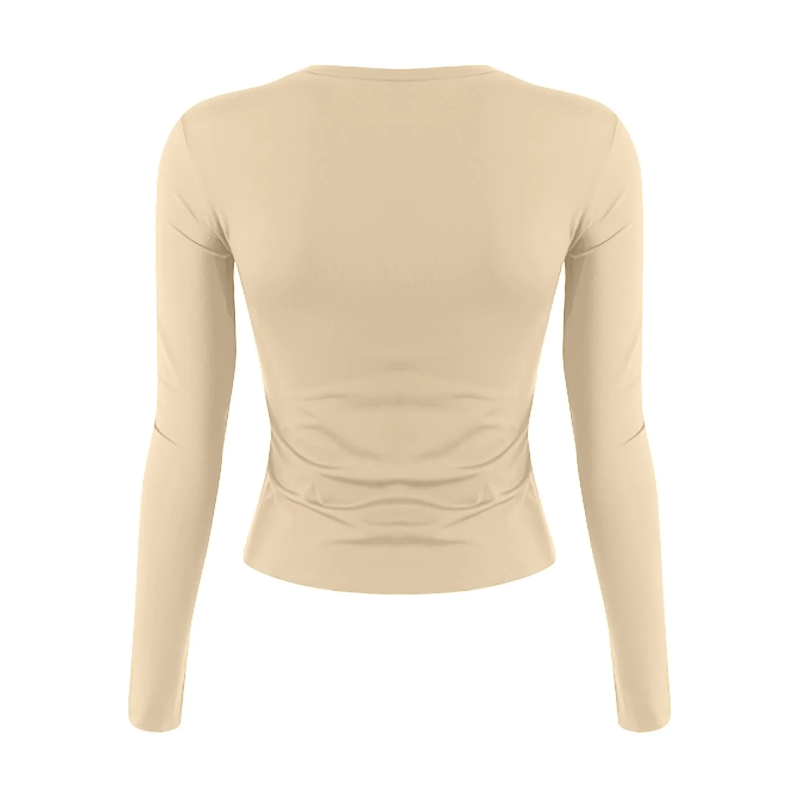 Women's Fashion Solid Colour Round Neck Long Sleeve T-Shirt Top